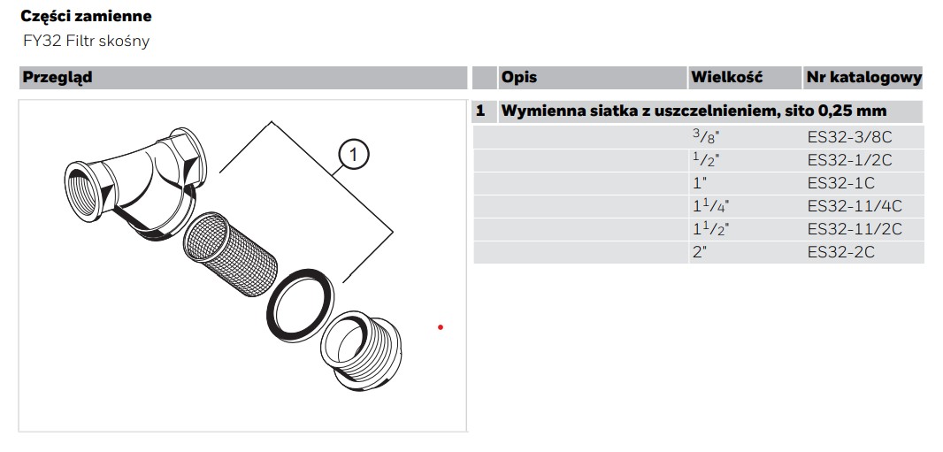 | ES32-1C | wkład filtracyjny z sitem 0,25 mm i uszczelnieniem, dla R1 |
