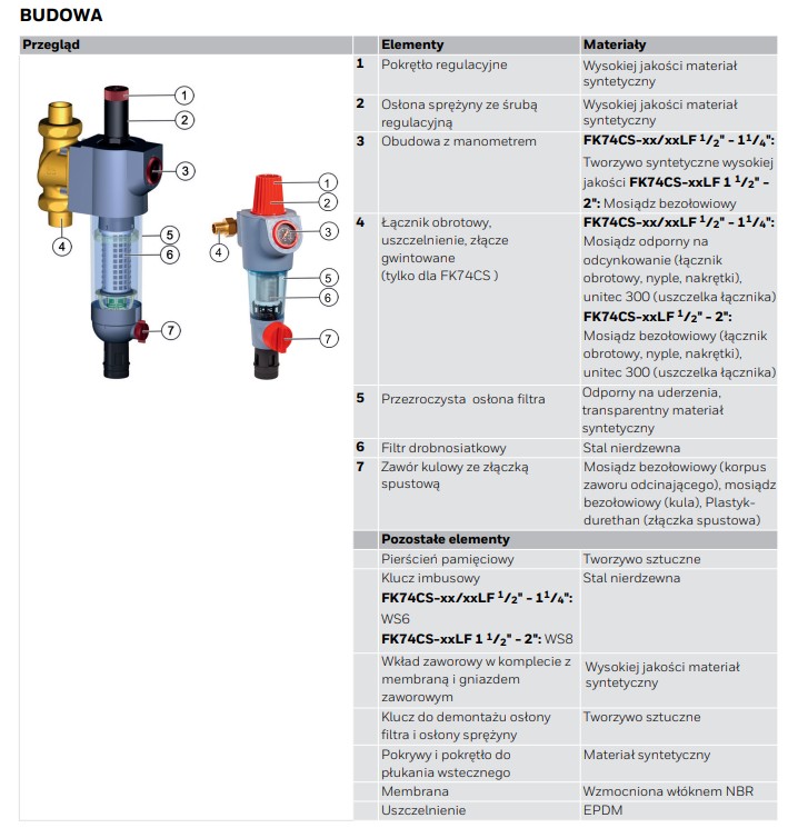 • Przezroczysta obudowa filtra odporna na uderzenia umożliwia obserwację stopnia zanieczyszczenia